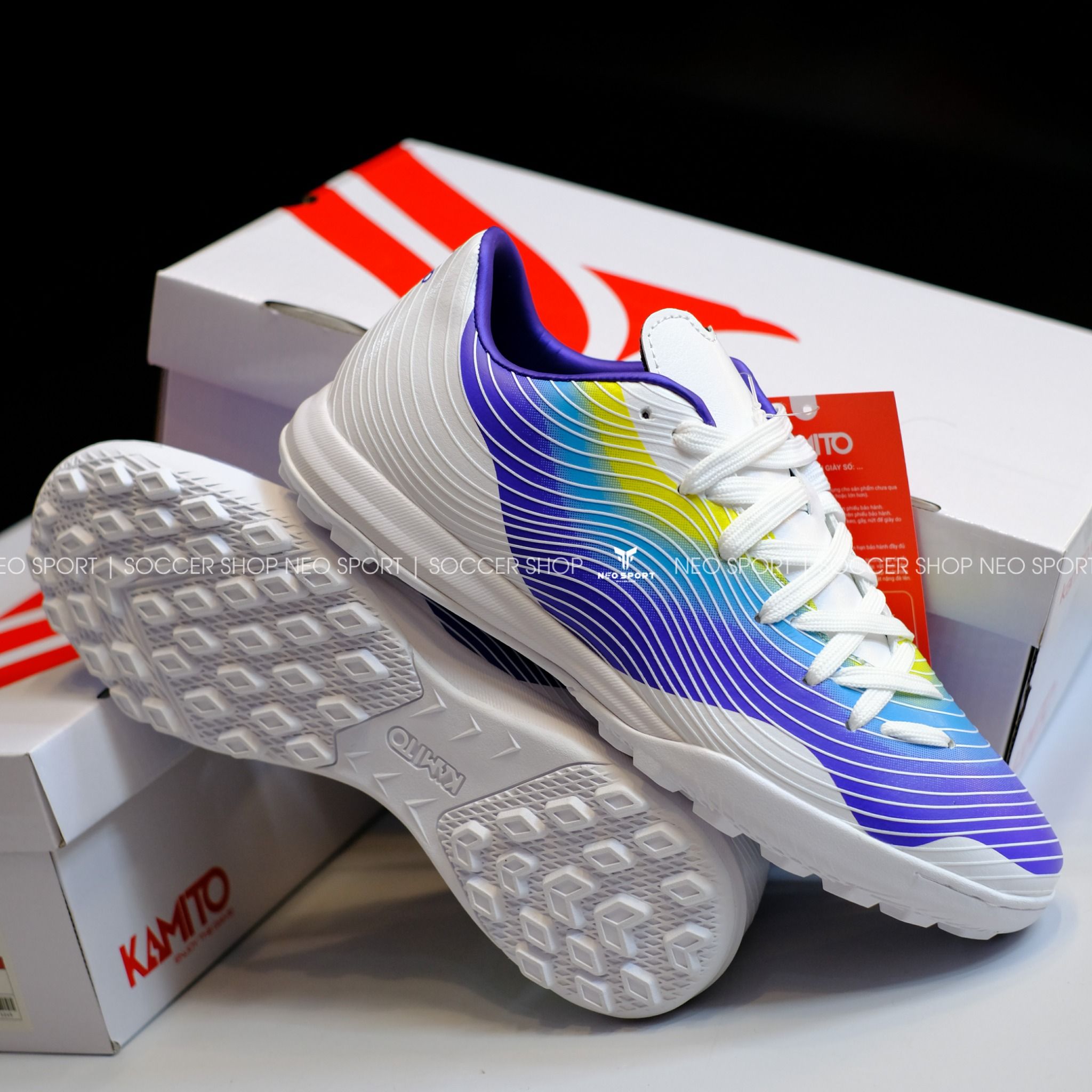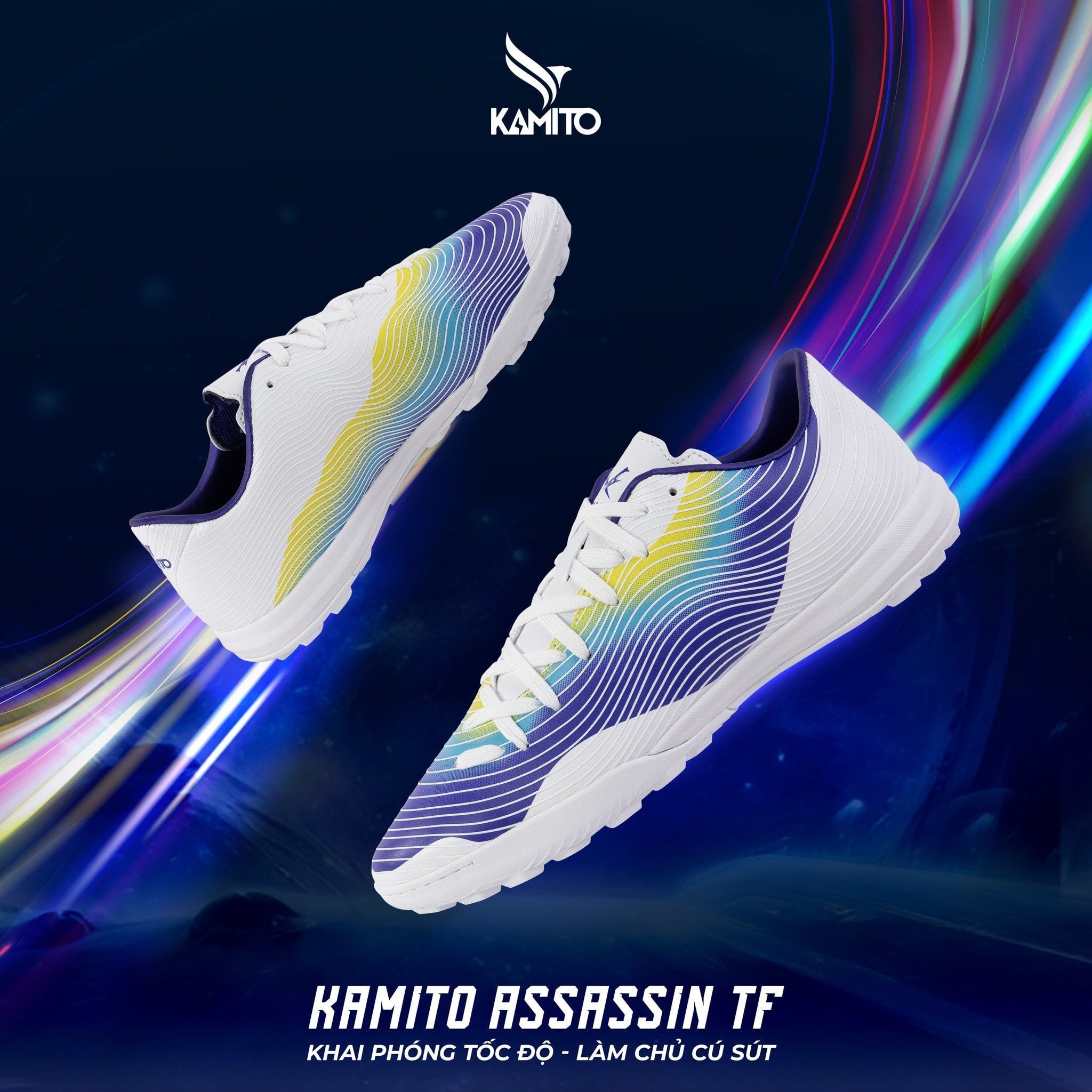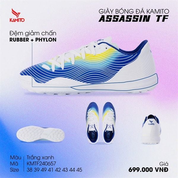 Giày Bóng Đá Chính Hãng KAMITO ASSASSIN Trắng Xanh TF