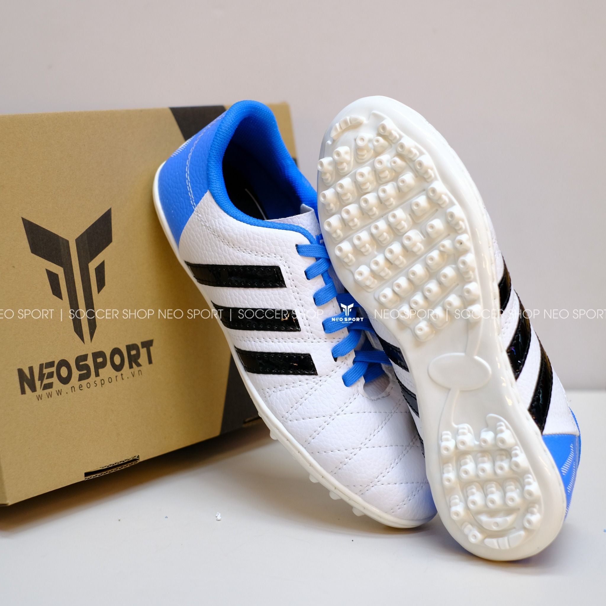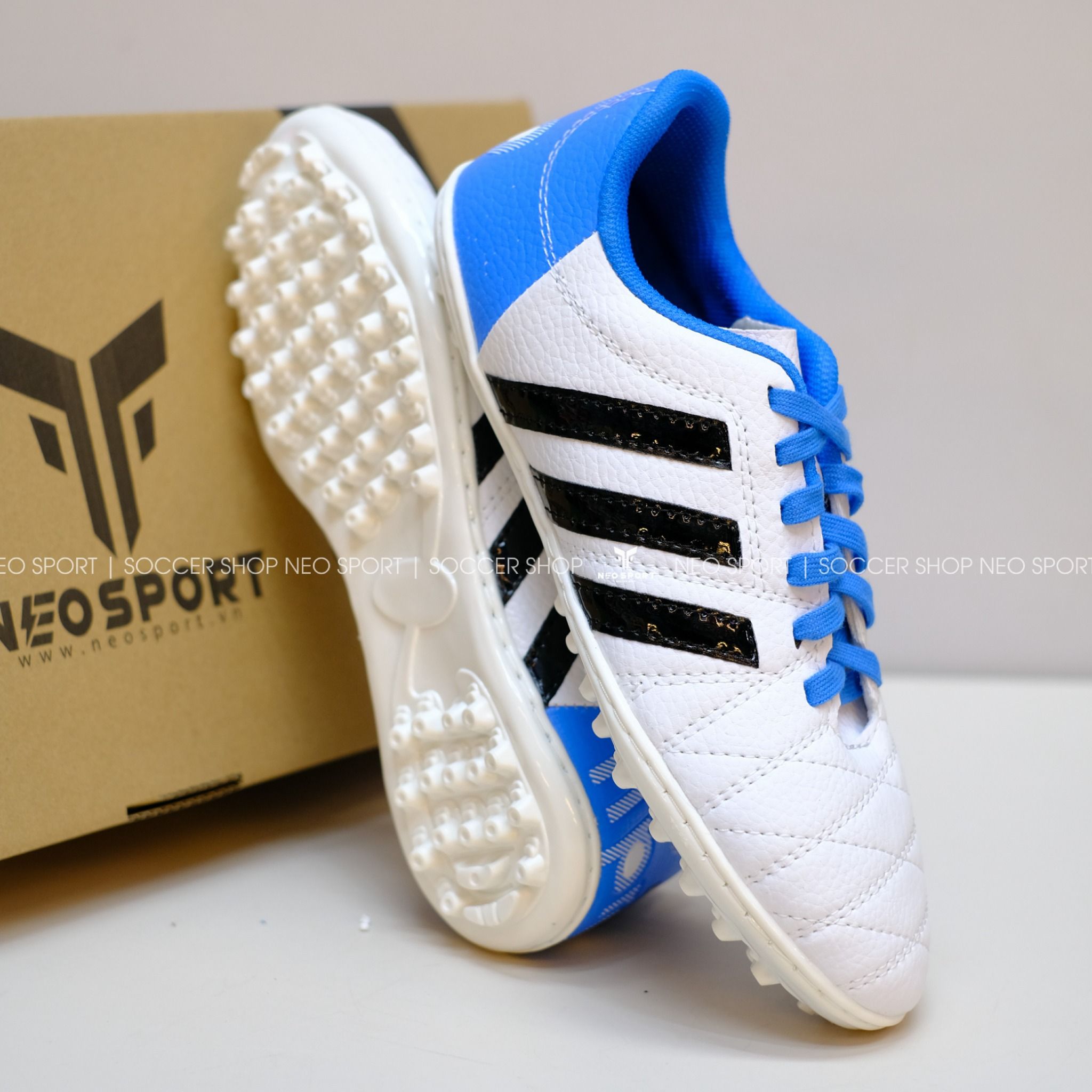 Giày Bóng Đá Cỏ Nhân Tạo 3 sọc 11Pro NEO Da sần Xanh Trắng TF