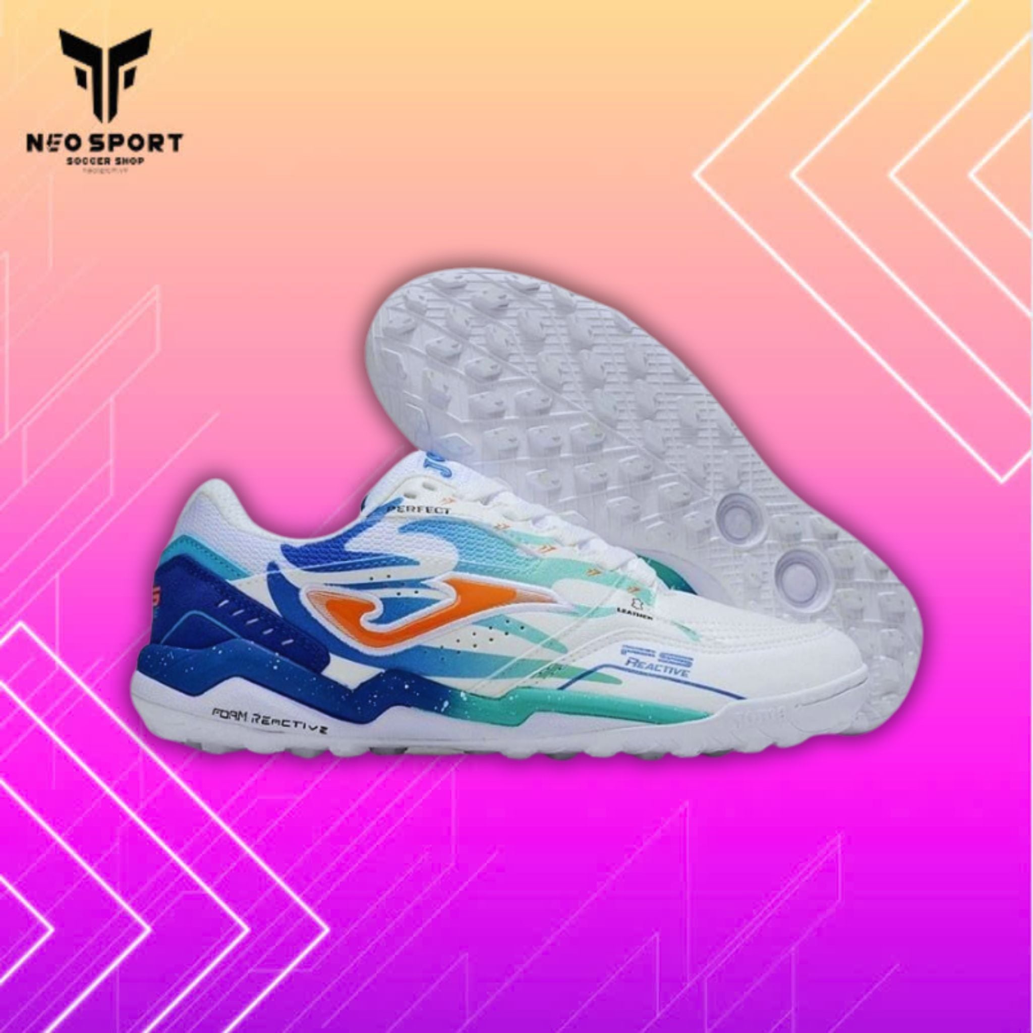 Giày Bóng Đá Cỏ Nhân Tạo Joma FS Reactive Trắng Xanh Bích TF