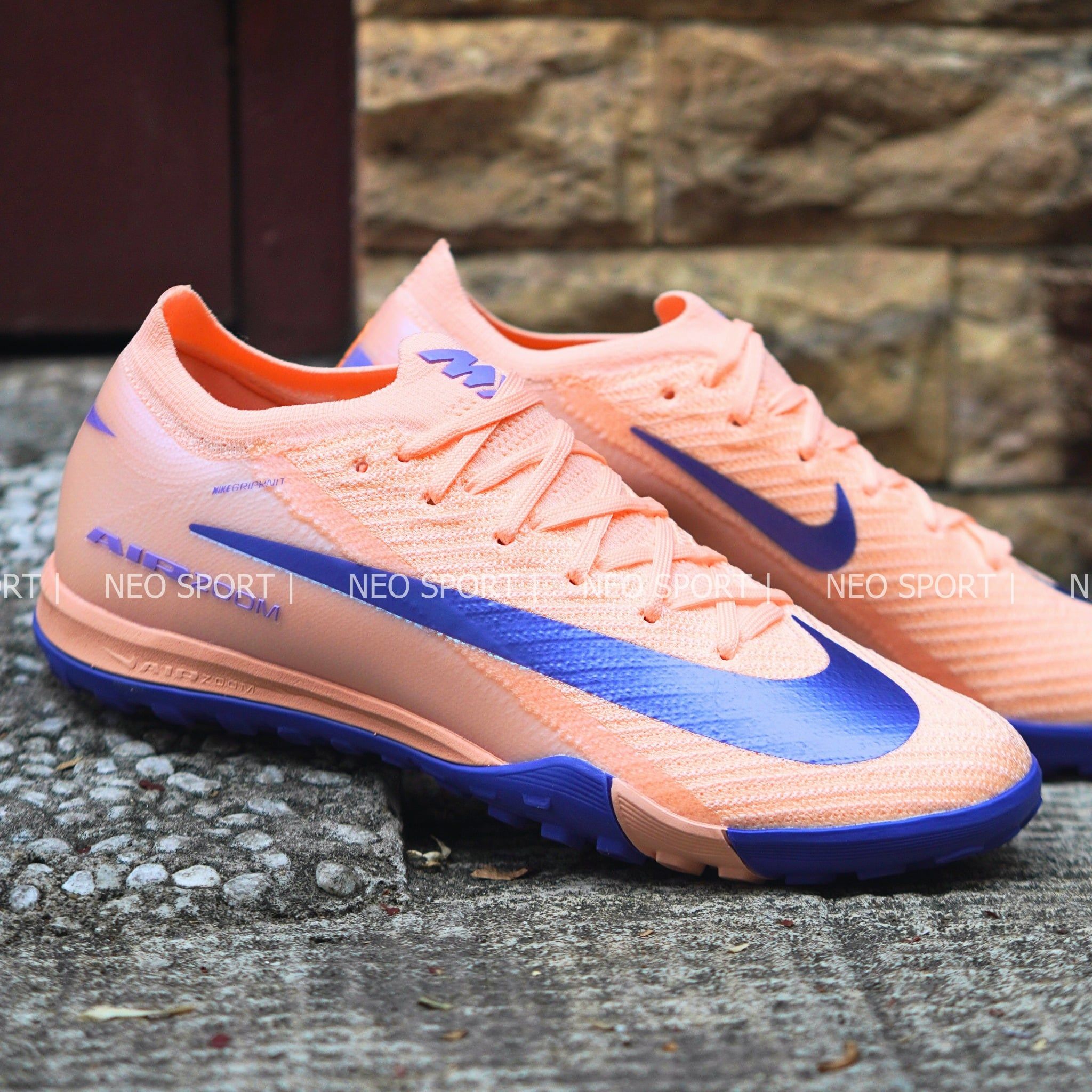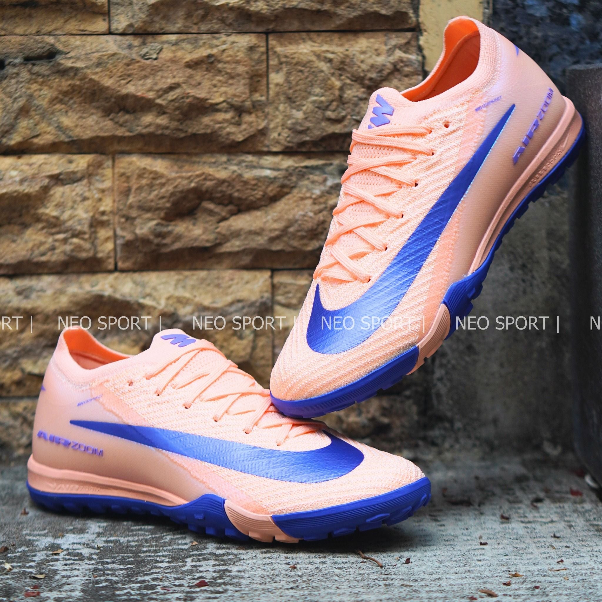 Giày Bóng Đá Cỏ Nhân Tạo Mercurial Vapor 16 Elite Bo Thun Cam Nhạt Đế Xanh Bích TF