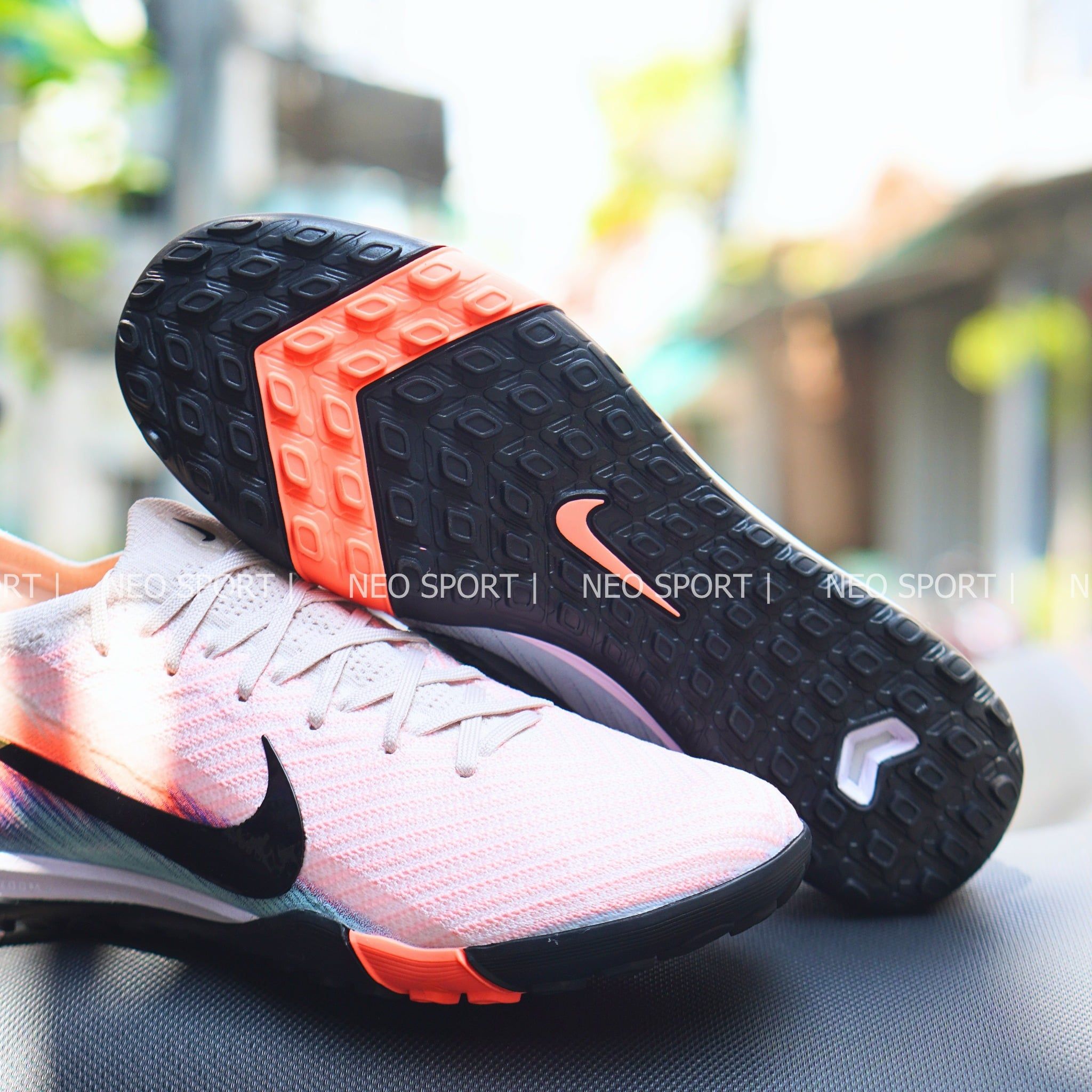 Giày Bóng Đá Cỏ Nhân Tạo Mercurial Vapor 16 Elite Bo Thun Cam Nhạt Xanh Biển TF