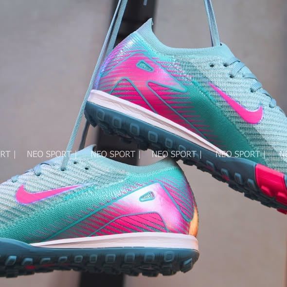 Giày Bóng Đá Cỏ Nhân Tạo Mercurial Vapor 16 Elite Bo Thun Xám Xanh/Logo Hồng TF