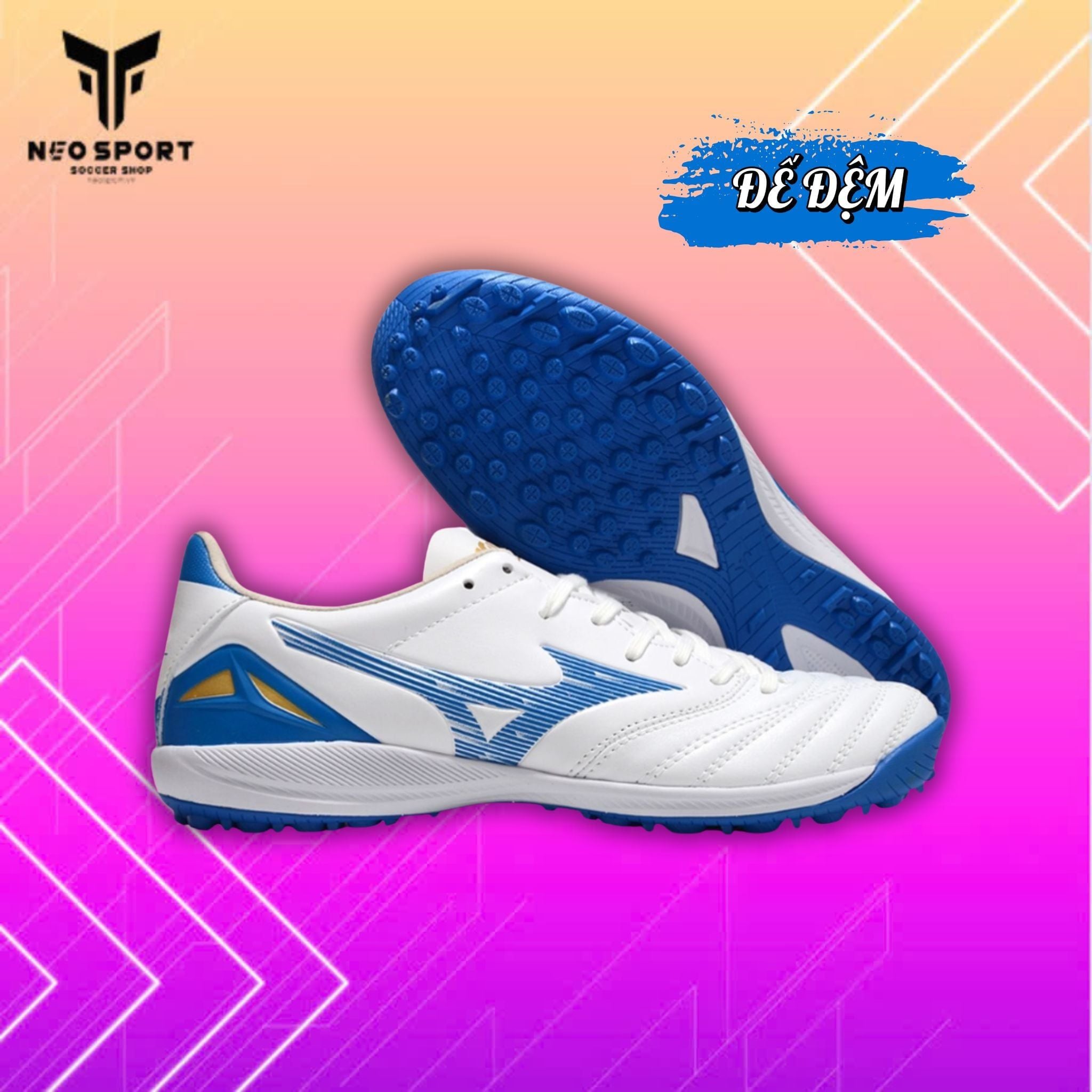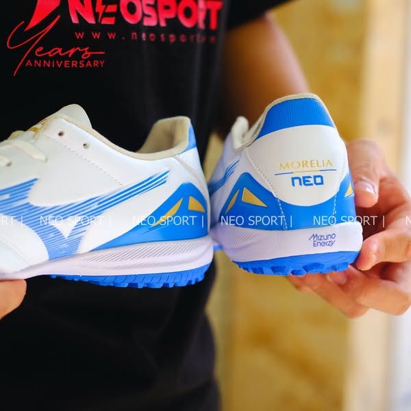 Giày Bóng Đá Cỏ Nhân Tạo Mizuno Morelia NEO 4 Pro Đế Đệm Trắng Xanh TF