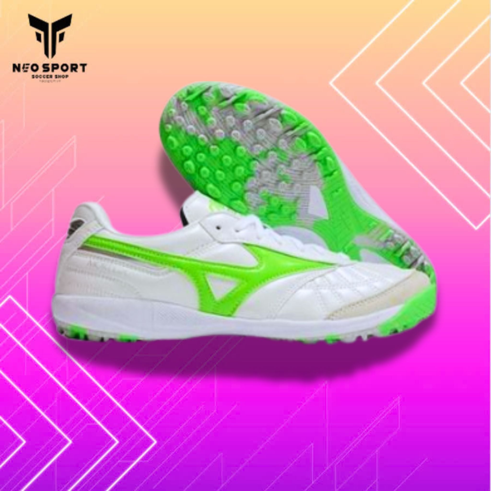 Giày Bóng Đá Cỏ Nhân Tạo Mizuno Morelia Sala Trắng/Xanh Lá Đế Camo TF