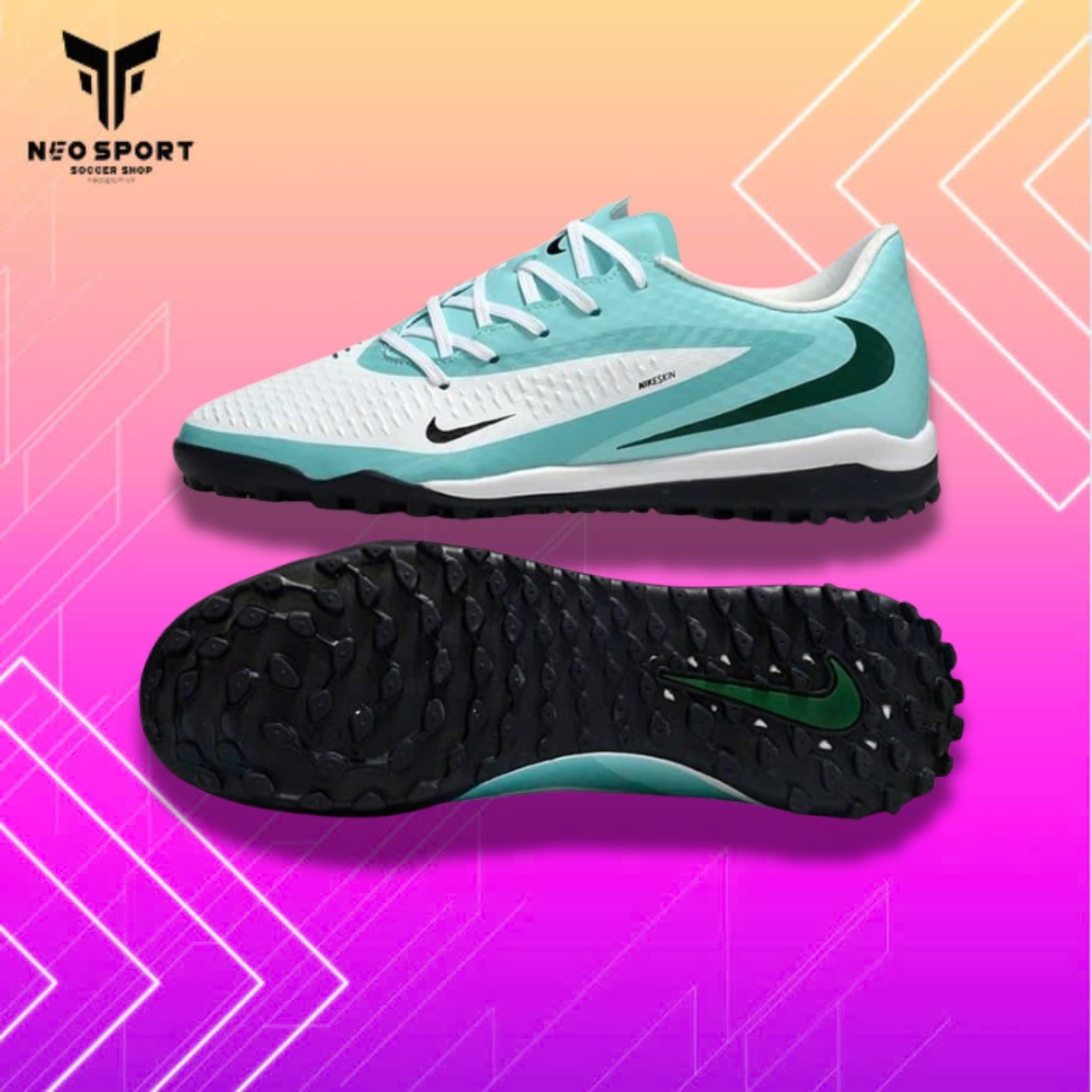 Giày Bóng Đá Cỏ Nhân Tạo Phantom 6 Low Academy Trắng Xanh Ngọc TF