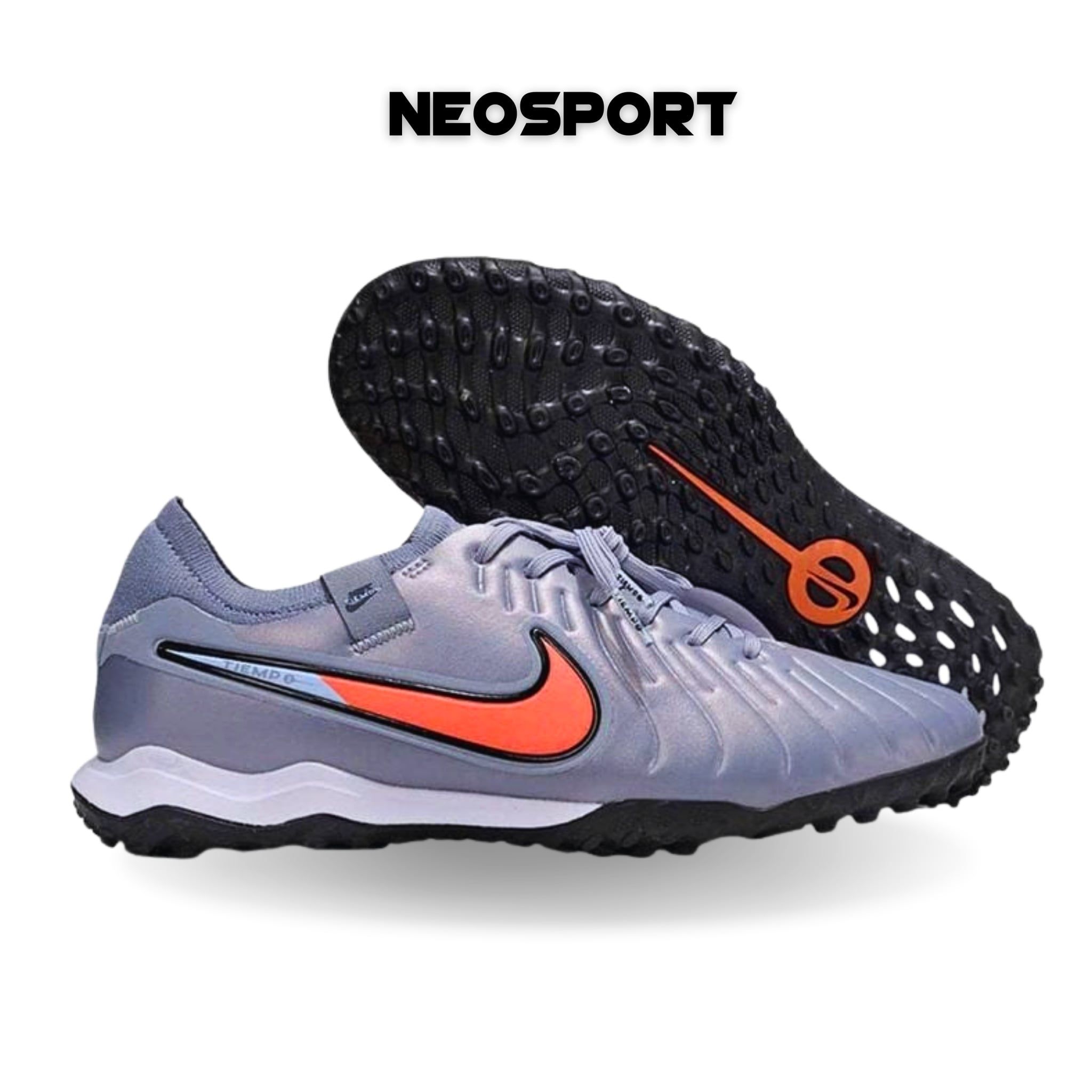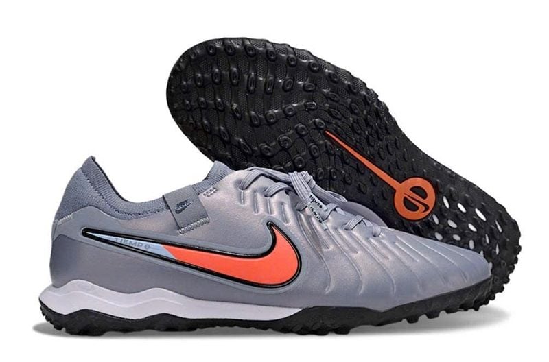 Giày Bóng Đá Cỏ Nhân Tạo Tiempo 10 Pro Bo Thun Xám Logo Cam TF