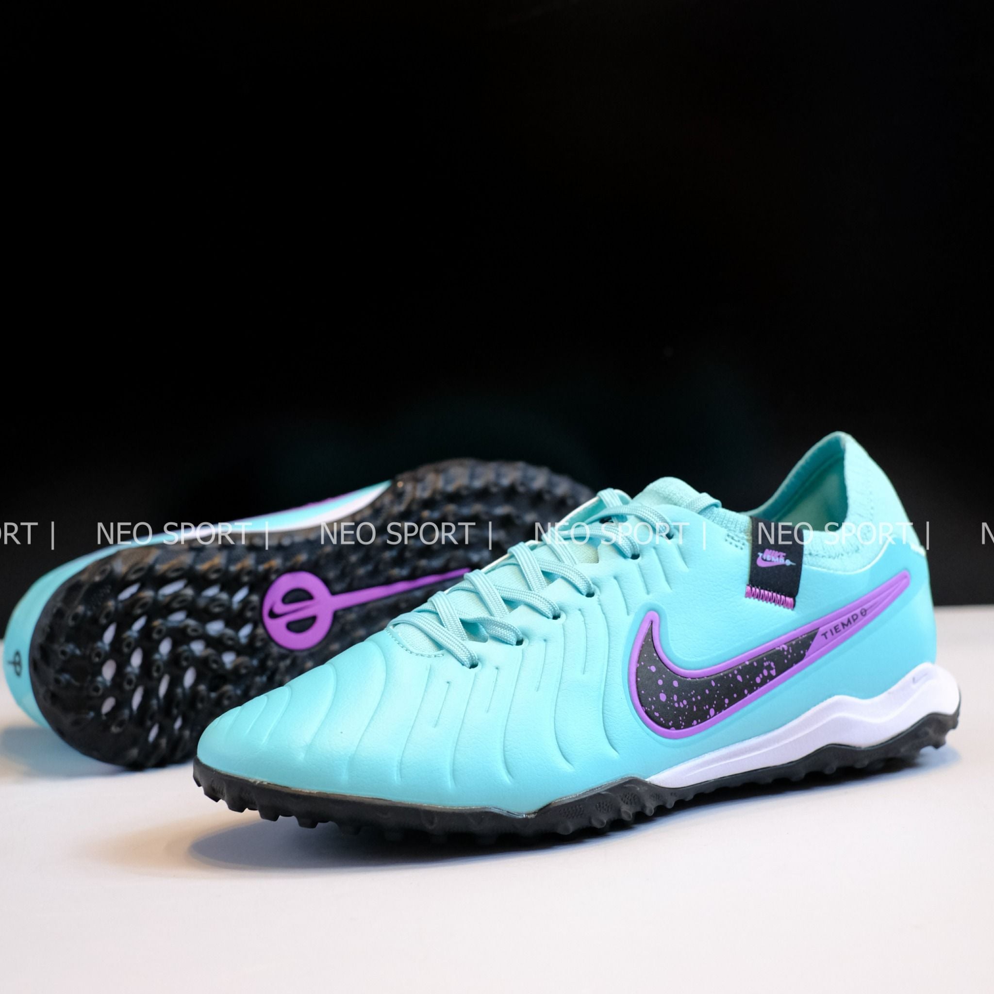 Giày Bóng Đá Cỏ Nhân Tạo Tiempo 10 Pro bo thun Xanh Ngọc TF