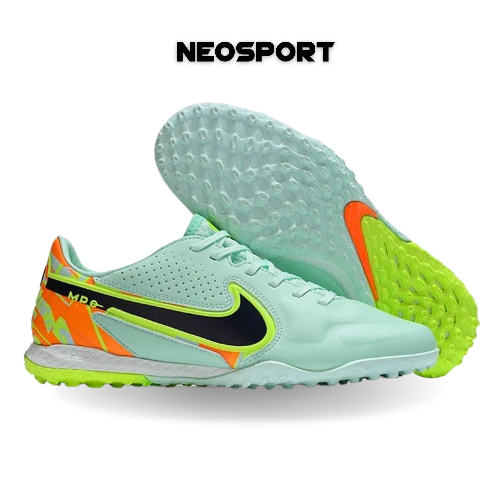 Giày Bóng Đá Cỏ Nhân Tạo Tiempo 9 Pro Bo Thun Xanh Mint Gót Cam TF