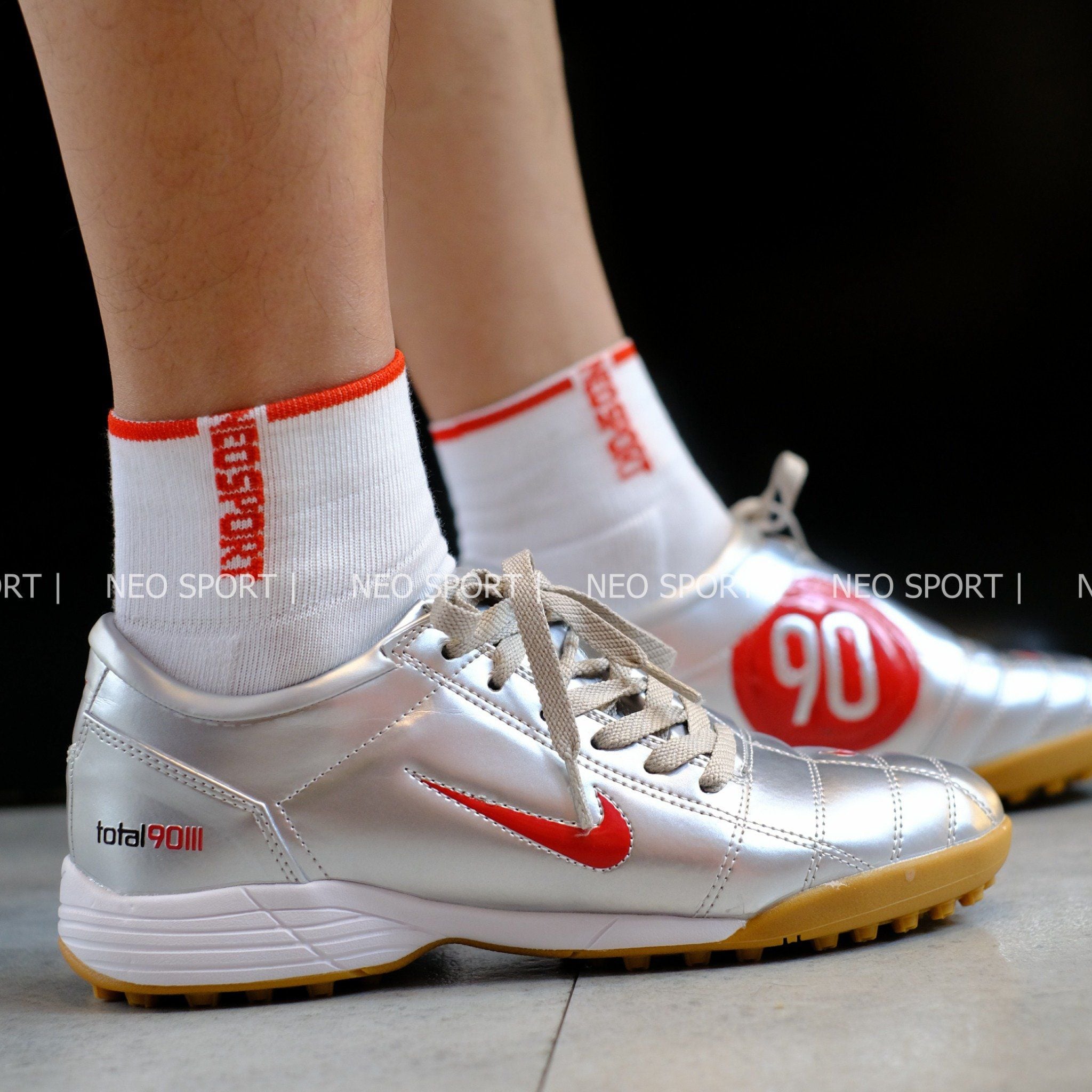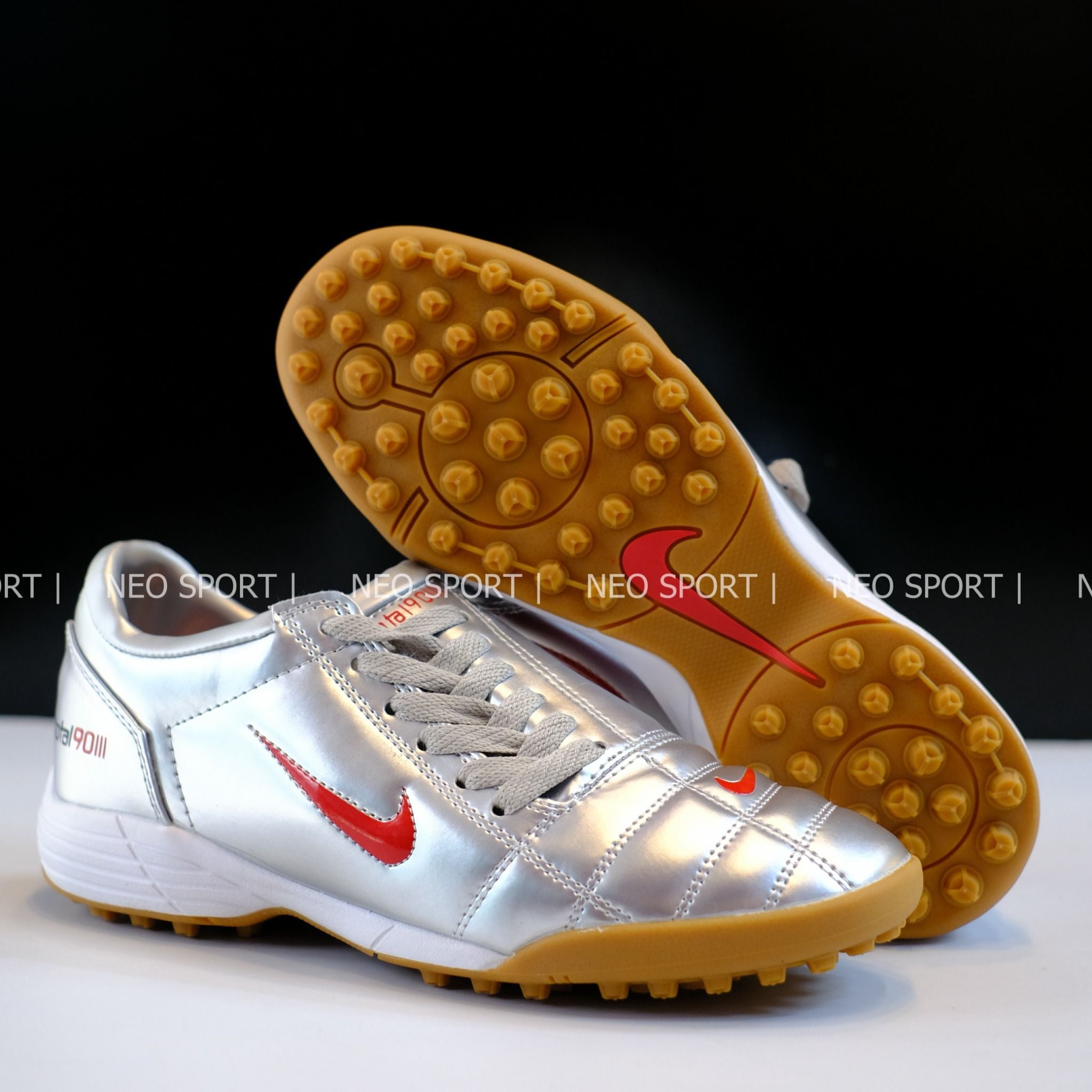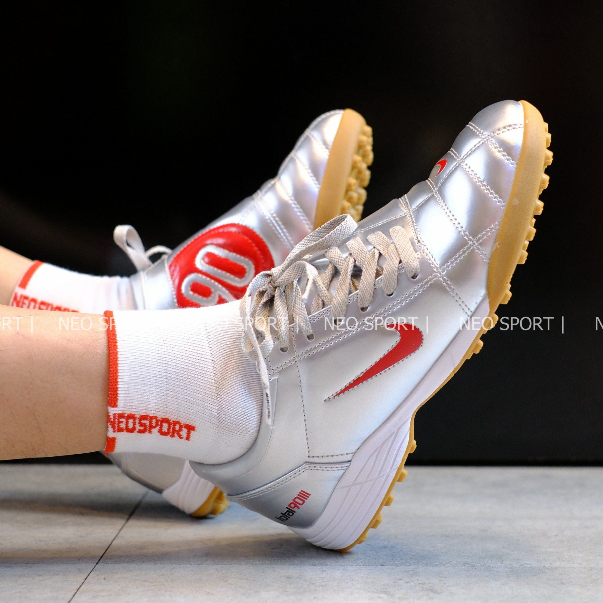 Giày Bóng Đá Cỏ Nhân Tạo Total 90 III Xám Logo Đỏ TF