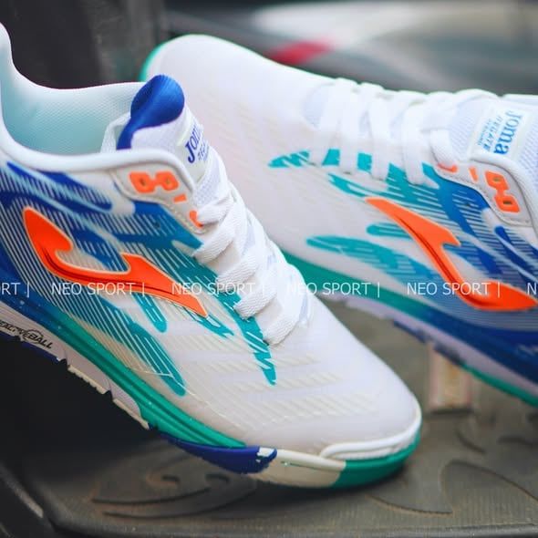 Giày Bóng Đá Futsal Joma FS Reactive Trắng Xanh Bích Đế Sọc IC
